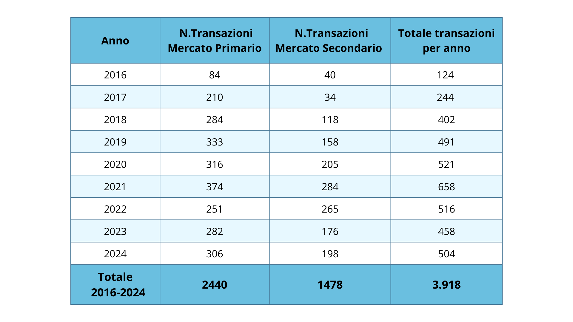 In questo scenario, si è registrata una contrazione dei volumi in assenza anche di quelle operazioni straordinarie che avevano caratterizzato gli anni precedenti – basti pensare alle cartolarizzazioni GACS o ai portafogli di grandi dimensioni trasferiti ad AMCO. Il 2024 ha chiuso con un totale transato di 9,6 miliardi di euro.