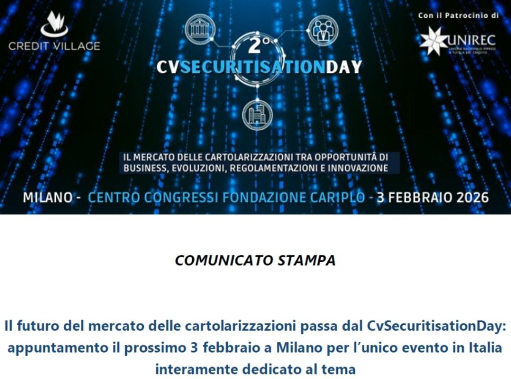 Milano, 27 gennaio 2026 – Torna per la seconda edizione il CvSecuritisationDay, organizzato da Credit Village, l’unico evento in Italia interamente dedicato allo…