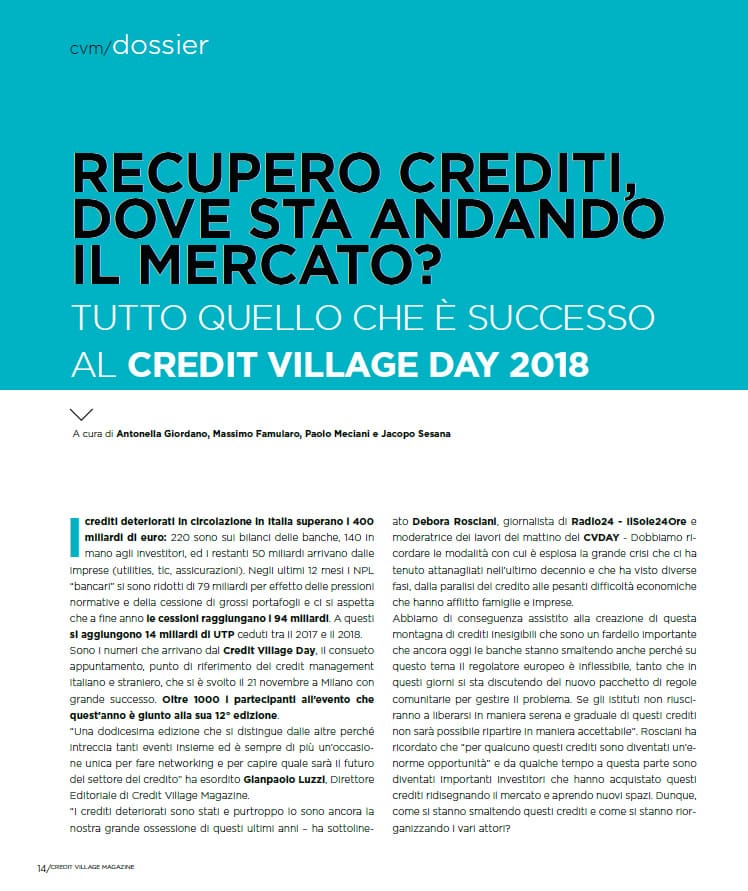 è la rivista italiana specializzata nel credit management e si rivolge a chi per lavoro, studio, interesse o curiosità, vuole essere informato e aggiornato sul mondo del credito.